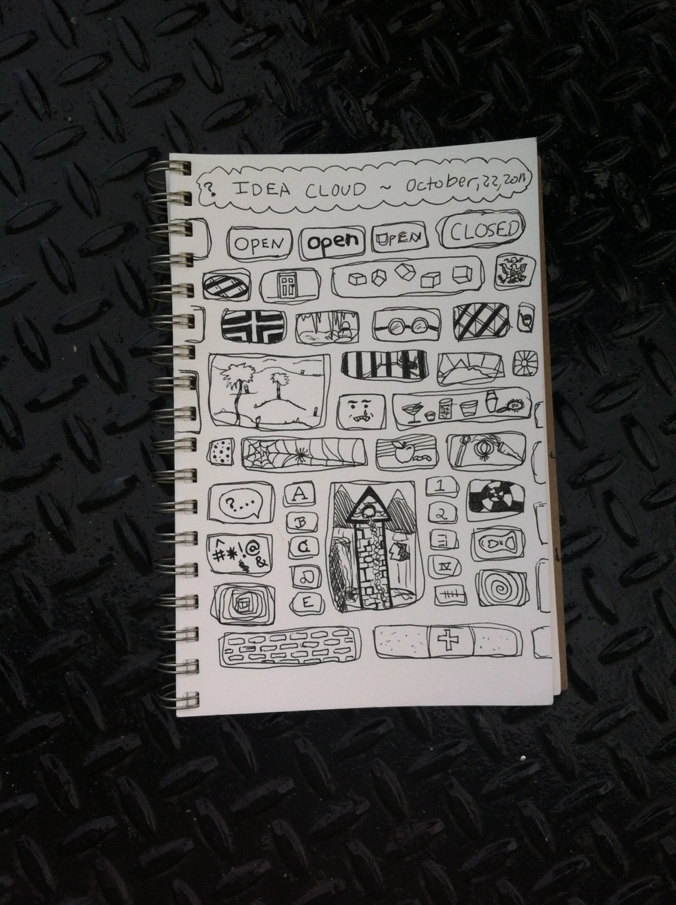 This Idea Cloud happened to take a little longer to post. I had a very stressful week both at home and at work (both work related) and now i’m just catching up and getting ready for Halloween Weekend! These little bits of sketches are filled with loads of strange stuff seeing as it took me until Monday the 24th to fill in all the blocks.