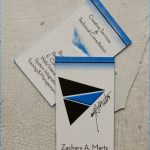 So a little about this project. Watercolor Paper, two color separation with Pantone C285 and K, Embossed center triangle, and blue colored edges.