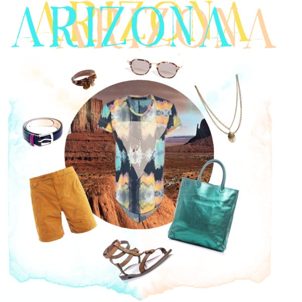Inspired by the colors of the desert in the setting sun. Complete with metallic accessories and gladiator sandals!