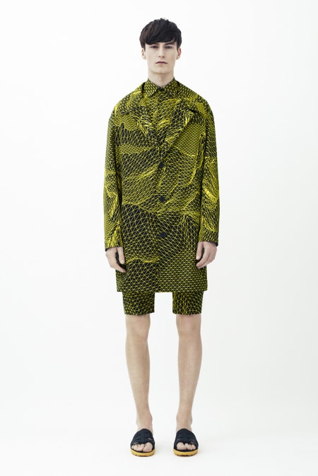 Renowned Scottish fashion designer Christopher Kane delivers a stellar collection under his eponymous imprint for 2014 spring/summer. Culling inspirations from graphic elements like the human body, 3D interpretations and grid-inspired designs, the spring/summer collection sees classic staples like the button-up, blazer, pleated shorts and tapered trousers re-imagined with bold designs. Elsewhere, loose, casual outfits offer more complacent options, as hoodies, pullovers and scarfs cater for the leisurely. Employing bright hues in juxtaposition to the otherwise plain silhouettes, Kane adds his own tech-driven aesthetics to the forthcoming season, nodding at futuristic motifs — a stark contrast to the retro sensibilities of other contemporary high fashion designers.