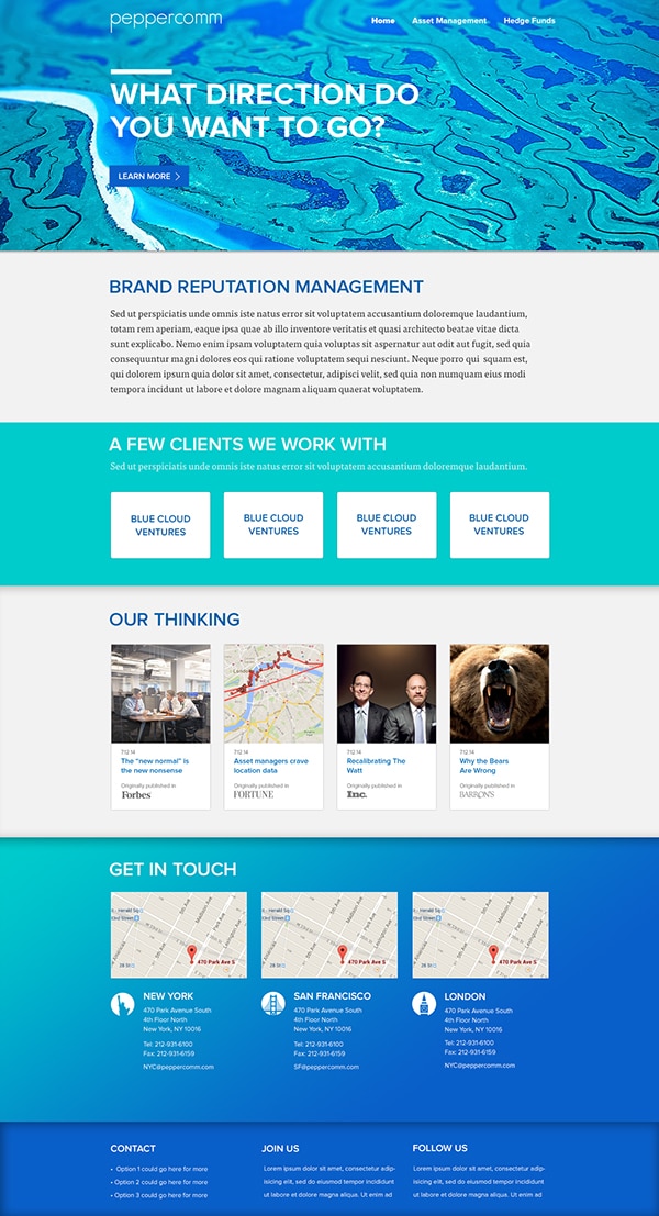 Peppercomm Hedgefund Website Iterations.