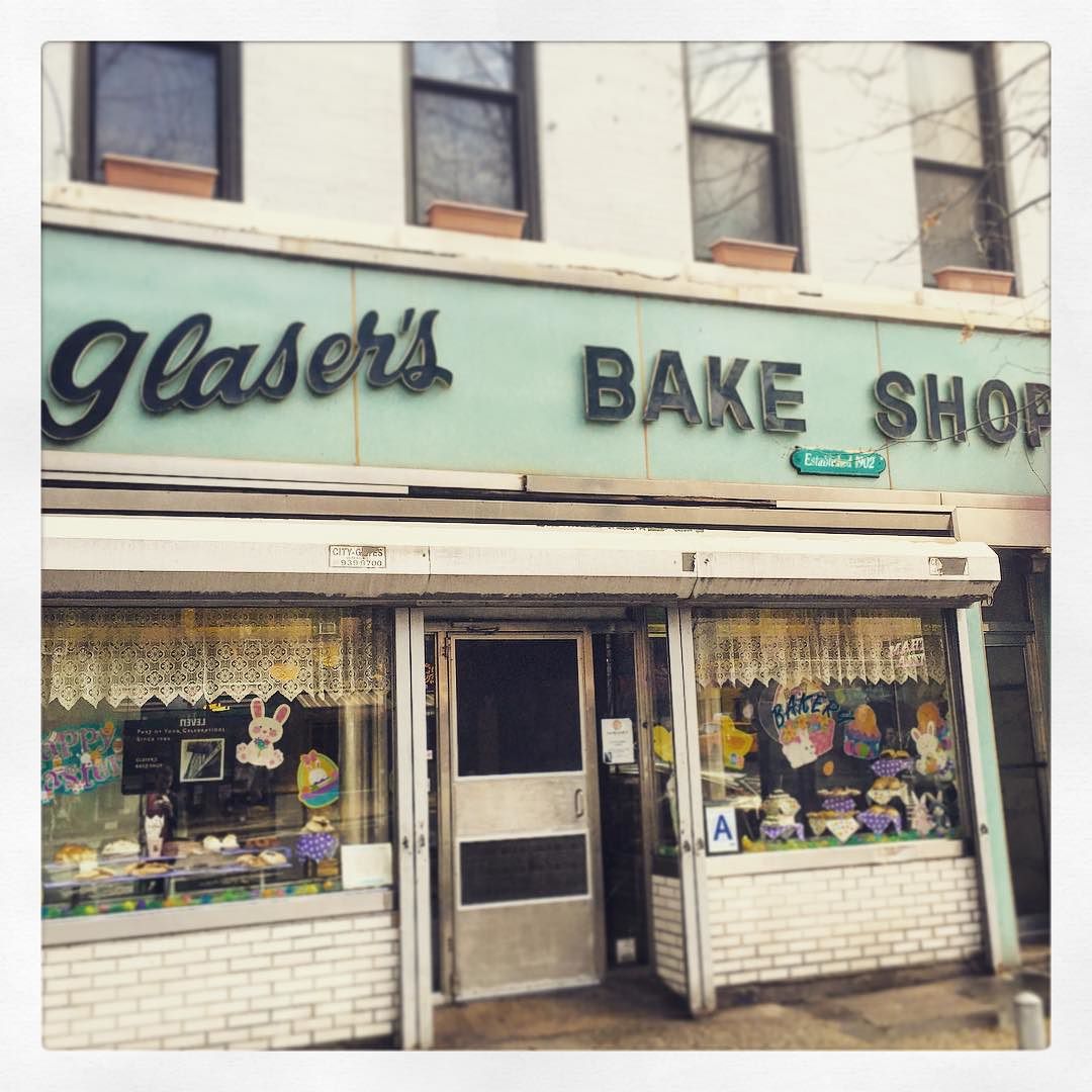 | A nice surprise after brunch, courtesy of Evan, was a trip to Glaser’s Bake Shop. At first glance Glaser’s is a beauty of old New York City Charm, but once you walk into the shop you are truly transported back. Inside, Large hand made case line the shop where bread and baked goods are on display. The two bakers behind the counter knew the customers in front of us by name and on our way out a long time customer in his car chatted us up about his favorite treat. Sorry to say the only photo I took was the outside of the shop, the black and white cookie didn’t last long.