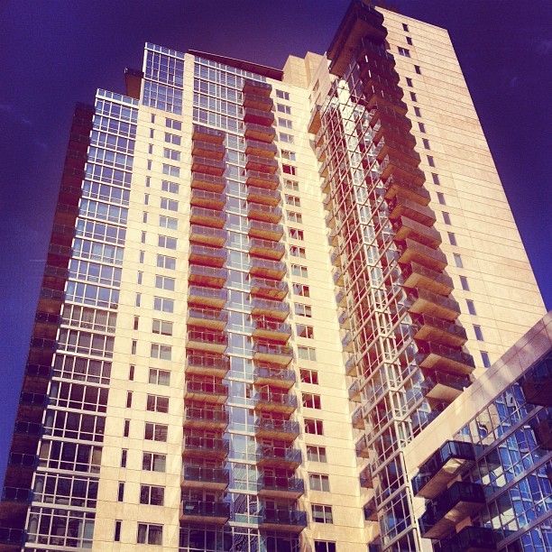 Summer thunder storms and torrential downpours are the best! I love the dramatic lighting and refections of the buildings in the windows.