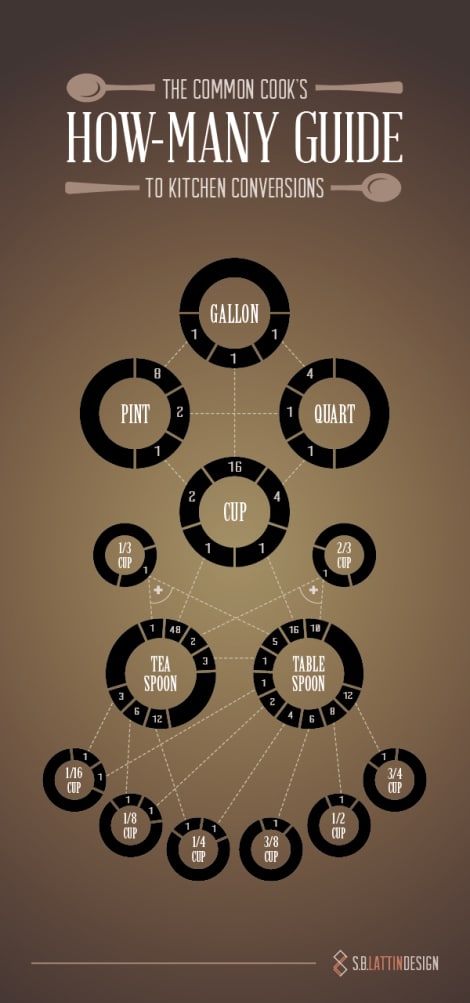 MEASURE UP If your kitchen drawers are anything like ours, you never have the right measuring implement for the recipe you’re tackling. Keep this chart on hand, and the next time you find yourself asking “How many…” you’ll know just what to do. (via...