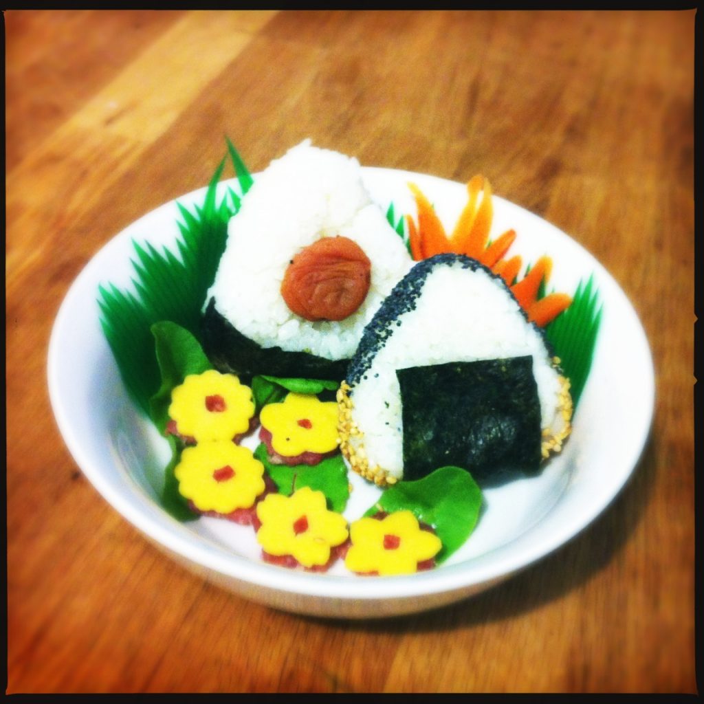 Onigiri Party I haven’t purchased a bento box that I really like yet and I’ve been using cheep Tupperware… I hope no one minds my Onigiri presentable in a bowl! LOL Spring has sprung Onigiri Snack Bento: 1 - Onigiri filled with umeboshi...