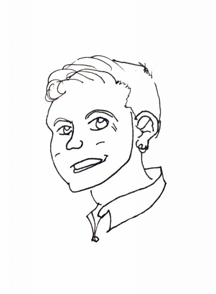 Frederick C. Zindell IV Cartoon My first little cartoon of Frederick - its pretty cute - i think i got his smile and hair down! Left Image is the cleaned up Photoshop version Right Image is the original iPhone photo