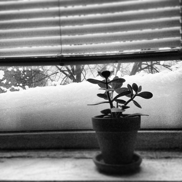 I wake to a quiet and snowy morning, grind some beans, and make myself coffee. Snow has clung to my summer window screens, making it appear that it has accumulated up to the first floor of the apartment building.
