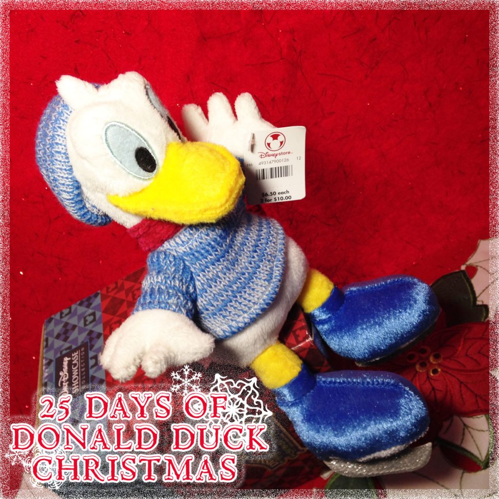 25 Days of Donald Duck Christmas - Day 7 | Mini Plush “Ski Bum” Donald. Has a 3 pom-pom hat on and is just about ready to hit the slopes! - from my collection. | Hope you enjoy my Donald Duck Holiday Spirit. >:( … i mean...